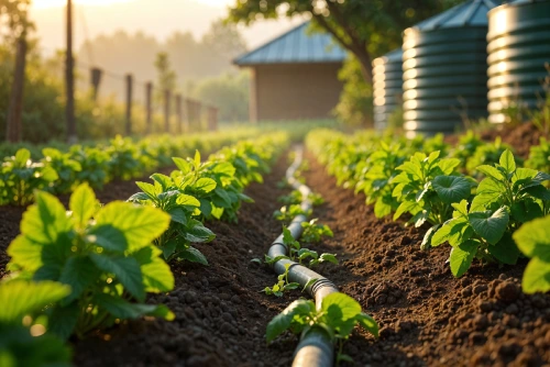 Advanced drip irrigation lines brought up to each plot for efficient, water‑saving cultivation